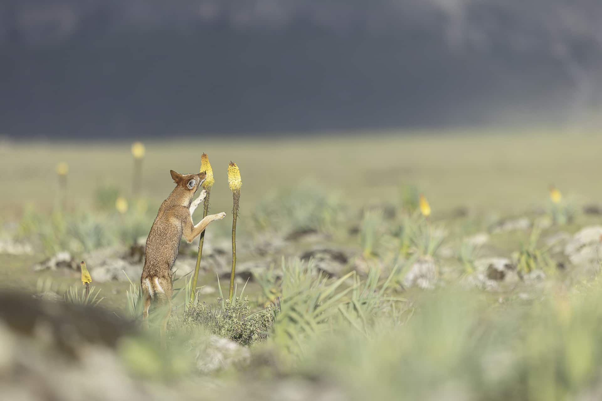 Découvrez une première série de cartes postales, 10×15, représentant le loup d’Ethiopie (Loup d’Abyssinie – CAnis simensis) et d’autres espèces emblématiques du Parc National des montagnes de Balé.